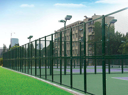 2、整體組裝,邊框先進(jìn)行防腐處理,圍網(wǎng)采用包塑絲編織而成,然后將圍網(wǎng)與框架進(jìn)行固定連接形成一體,這種樣式成本低,圍網(wǎng)與框架稍微有一點(diǎn)色差,但不明顯,防護(hù)性強(qiáng)。